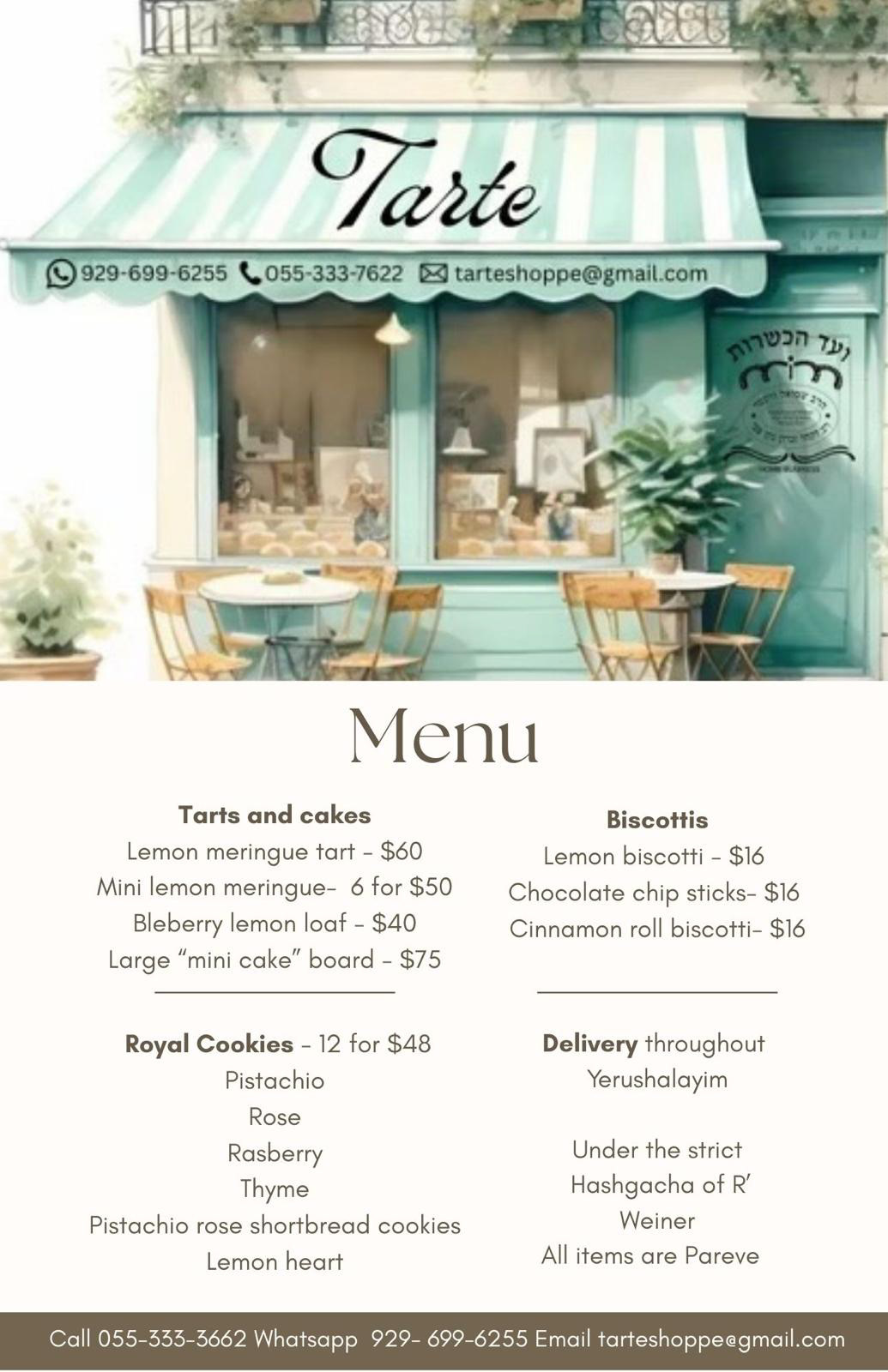 I designed this elegant, minimal menu to reflect Tarte’s refined and Parisian-inspired style. Soft colors, clean fonts, and a balanced layout create a fresh, inviting look that complements the brand’s artisanal desserts.